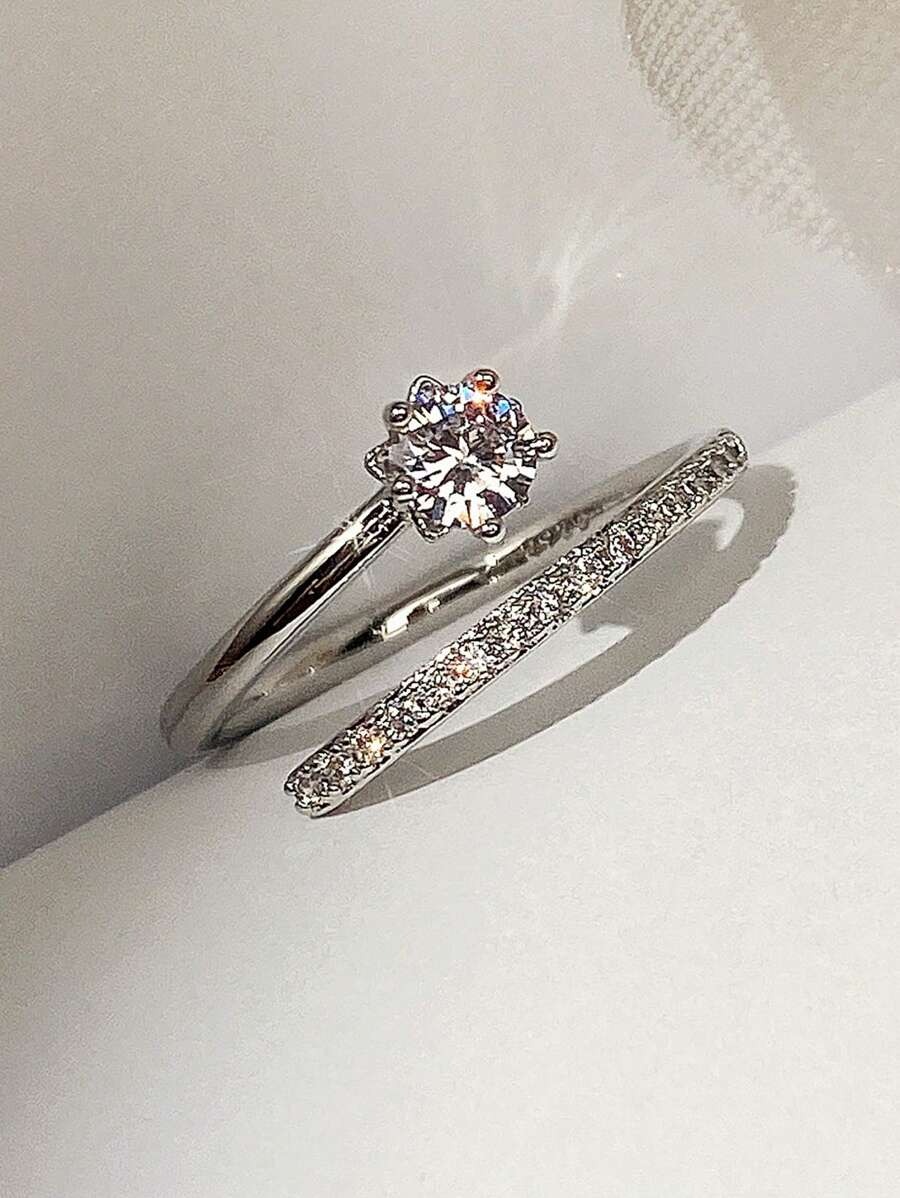 A sophisticated two-piece set combining a solitaire ring with a sparkling eternity band for a layered, modern style.